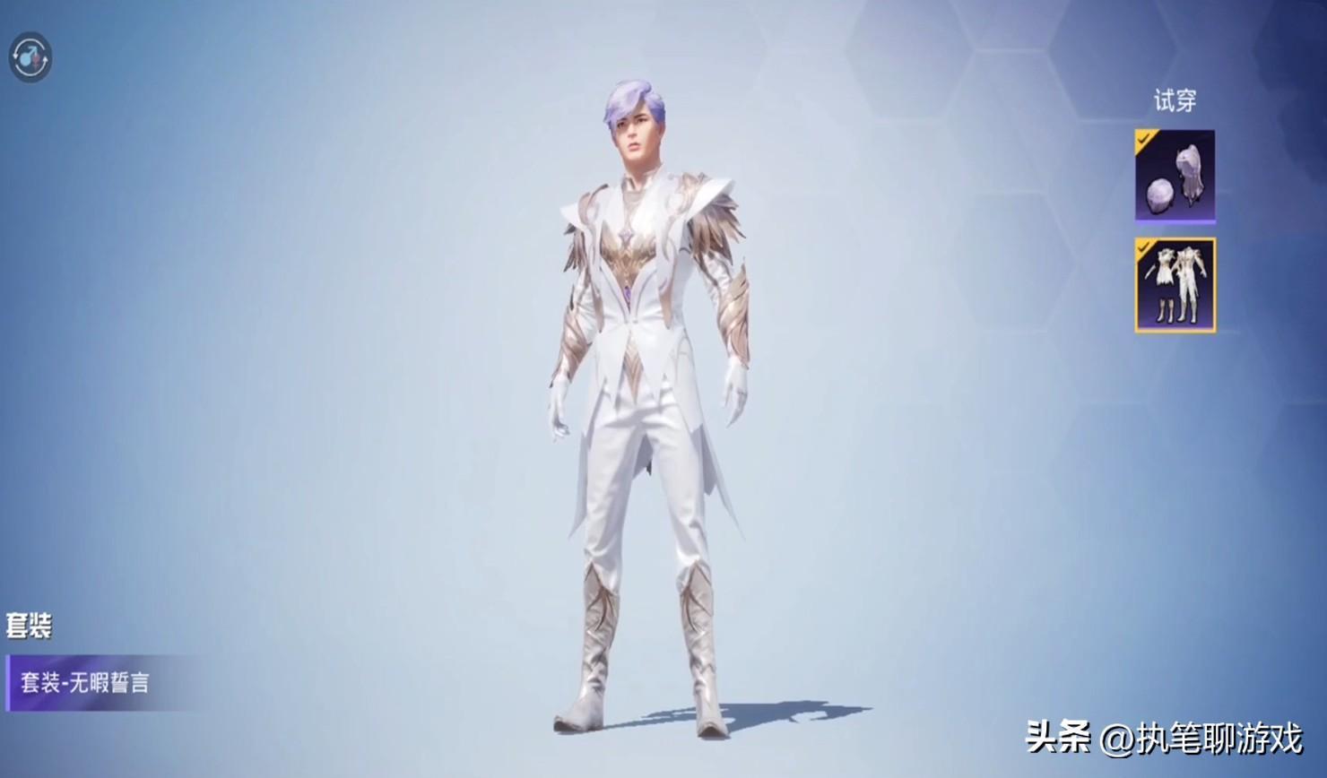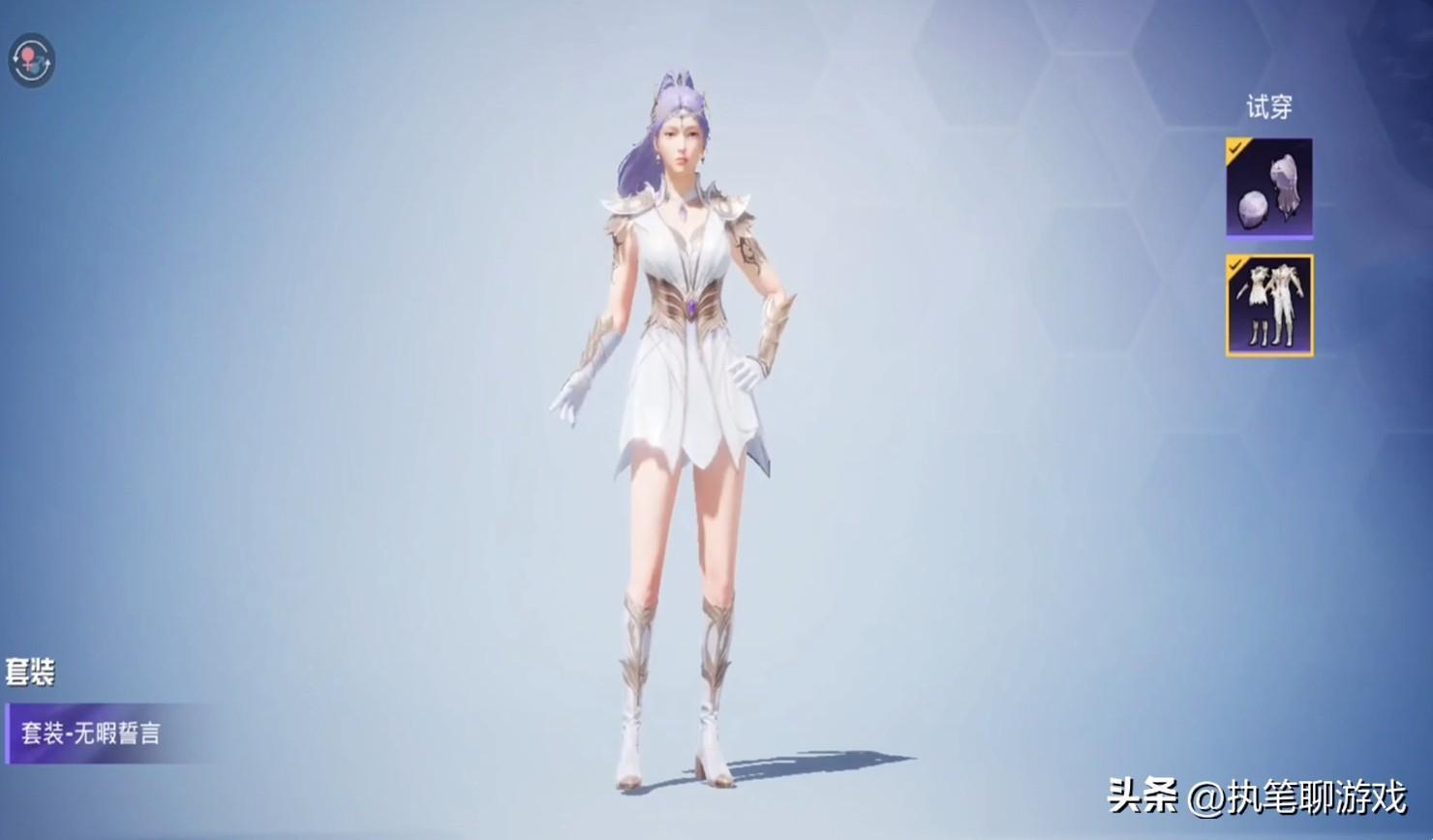 接下來登場的第2套紫級套裝,被光子命名爲“無暇誓言”,同樣有着媲美“十二星座”的顏值與品質,唯獨缺少專屬的入場動作特效而已,而且這種紫色的髮型比較適合DIY,在遊戲中也比較顯眼。