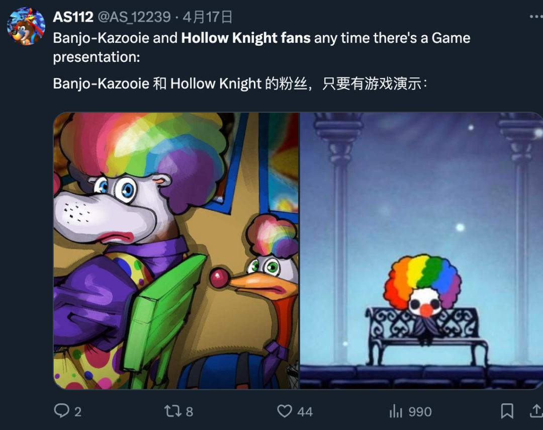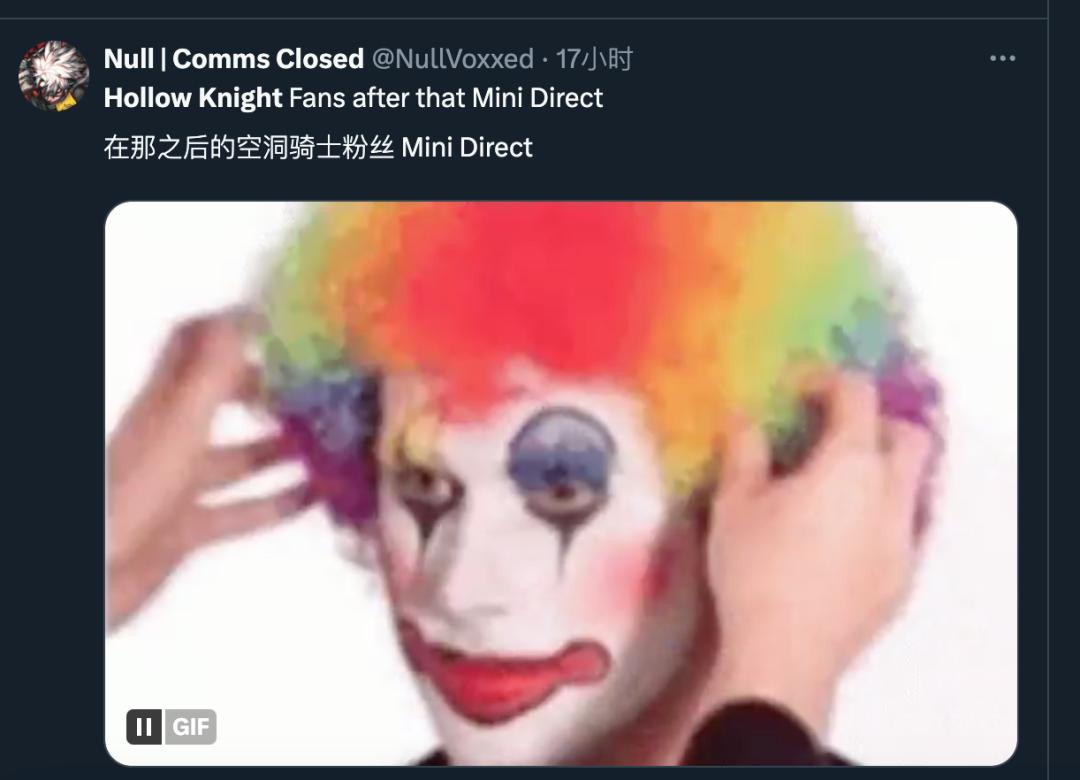 星彡P點評:因爲沒有《絲之歌》出現,外網的空洞騎士粉絲紛紛破防,開始自嘲“小丑”。