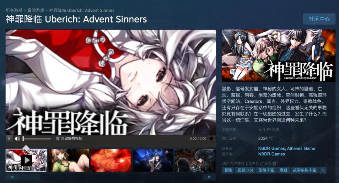 國產視覺小說《神罪降臨》商店頁公開,預計2024年發售遊戲第一、二部。