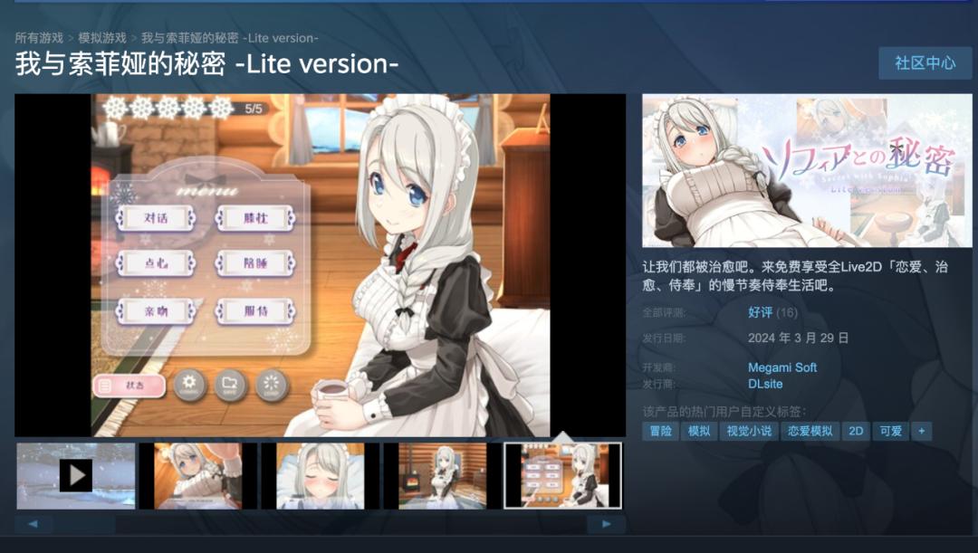 推薦一款可以免費遊玩的和女僕卿卿我我的治癒系侍奉遊戲,《我與索菲婭的祕密 -Lite version-》,有中文。
