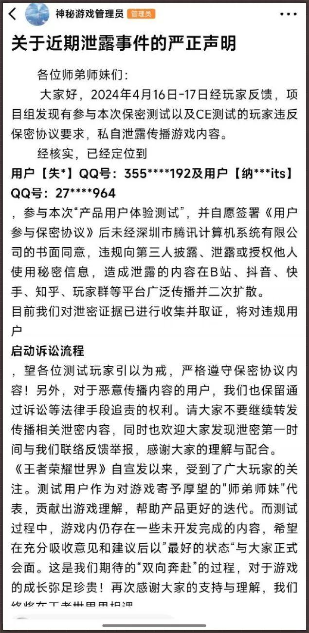 前兩天有個未成年人拿着父母身份,簽訂了遊戲測試的保密協議,回頭就在網上泄露了《王者榮耀 世界》的實機視頻。