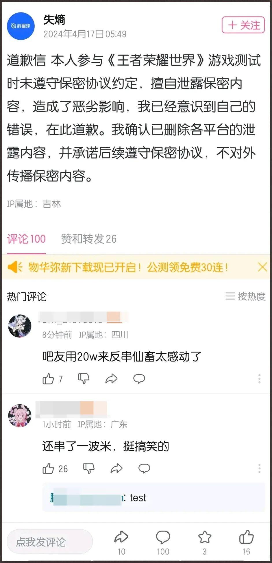 泄露視頻被髮出後不久被下架,後來該UP主於4月17日凌晨發佈道歉,隨後賬號被封。