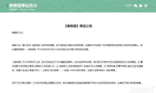 雖然說要遊戲停運了,但製作組還宣佈另外一個重磅消息,就是他們會在今年第三季度推出《食物語》陪伴版。