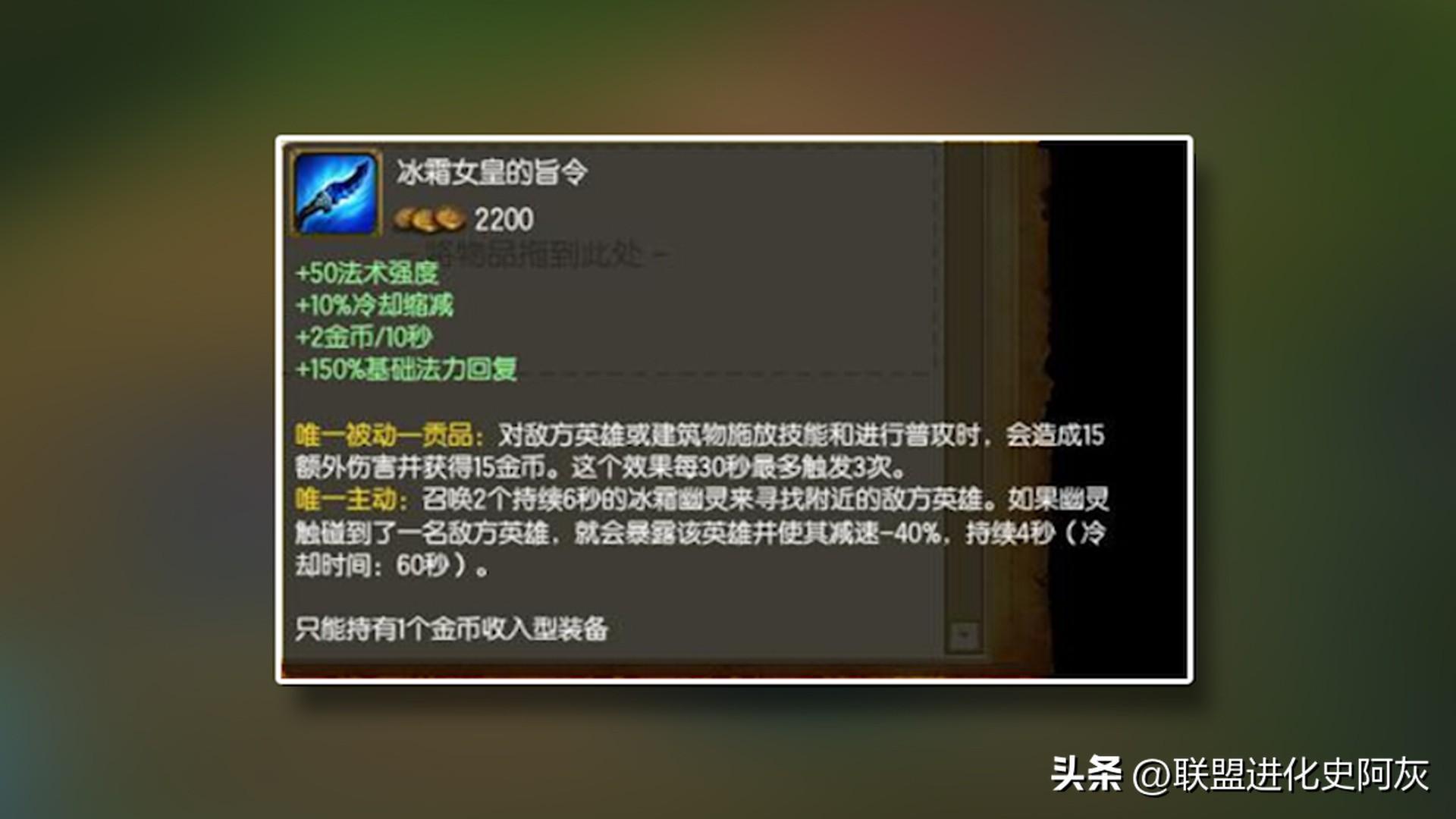 但要說離譜,還得屬冰霜女皇指令,一分鐘一次的範圍雷達加鎖頭減速,讓草叢陰人變得毫無意義,2200塊性價比也堪稱無敵!但凡是個長手AP出它準沒毛病,對那些摸獎英雄,更是史詩級加強。