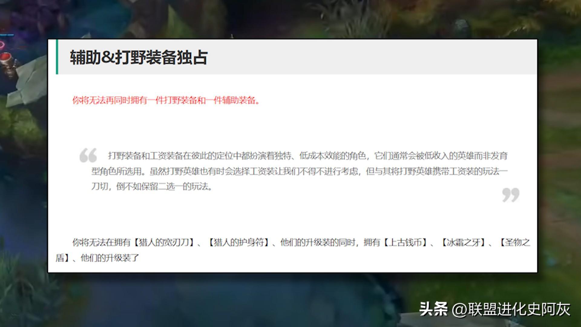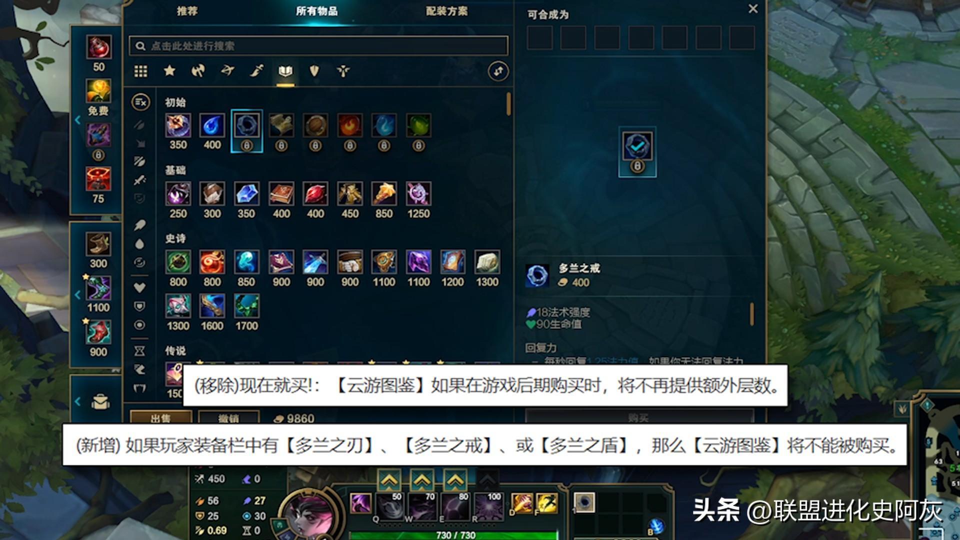 然而這還沒完,由於多蘭系列的加強,很多輔助玩家爲了打線優,出門會先買多蘭,後邊再補工資裝,個人覺得這個沒啥毛病,區區一件多蘭也影響不了局勢,但設計師卻認爲,你這是挑釁我的權威啊,現在就敢出多蘭,之後會出什麼我不敢想哦,反手就將出門裝限制爲一件。