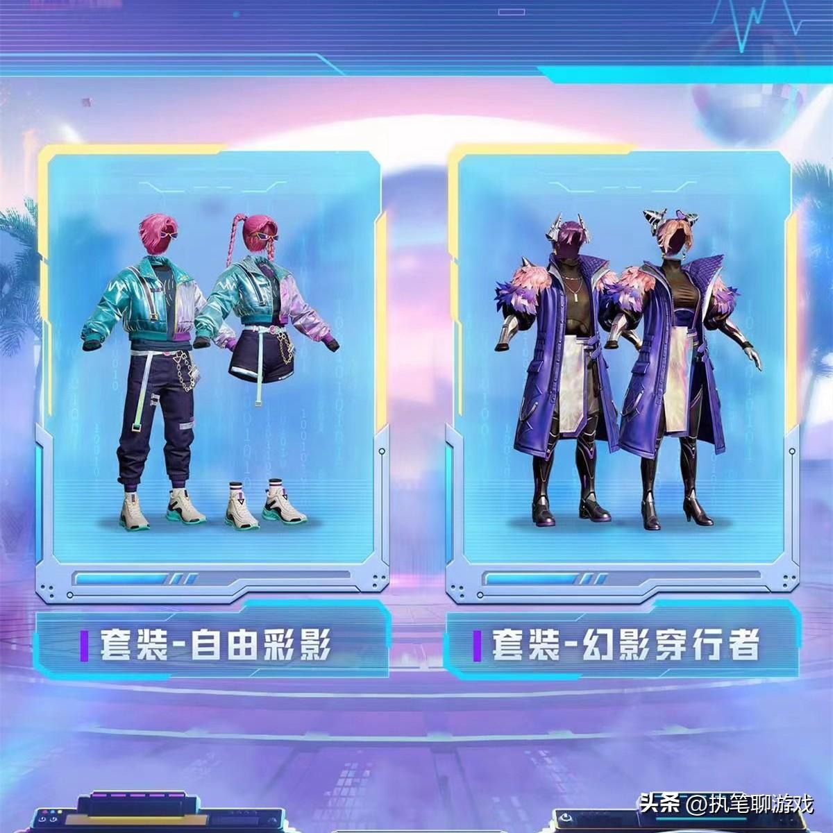 如圖所示,此次的直售新軍需一共有2個套裝,它們分別被光子命名爲自由彩影、幻影穿行者。
