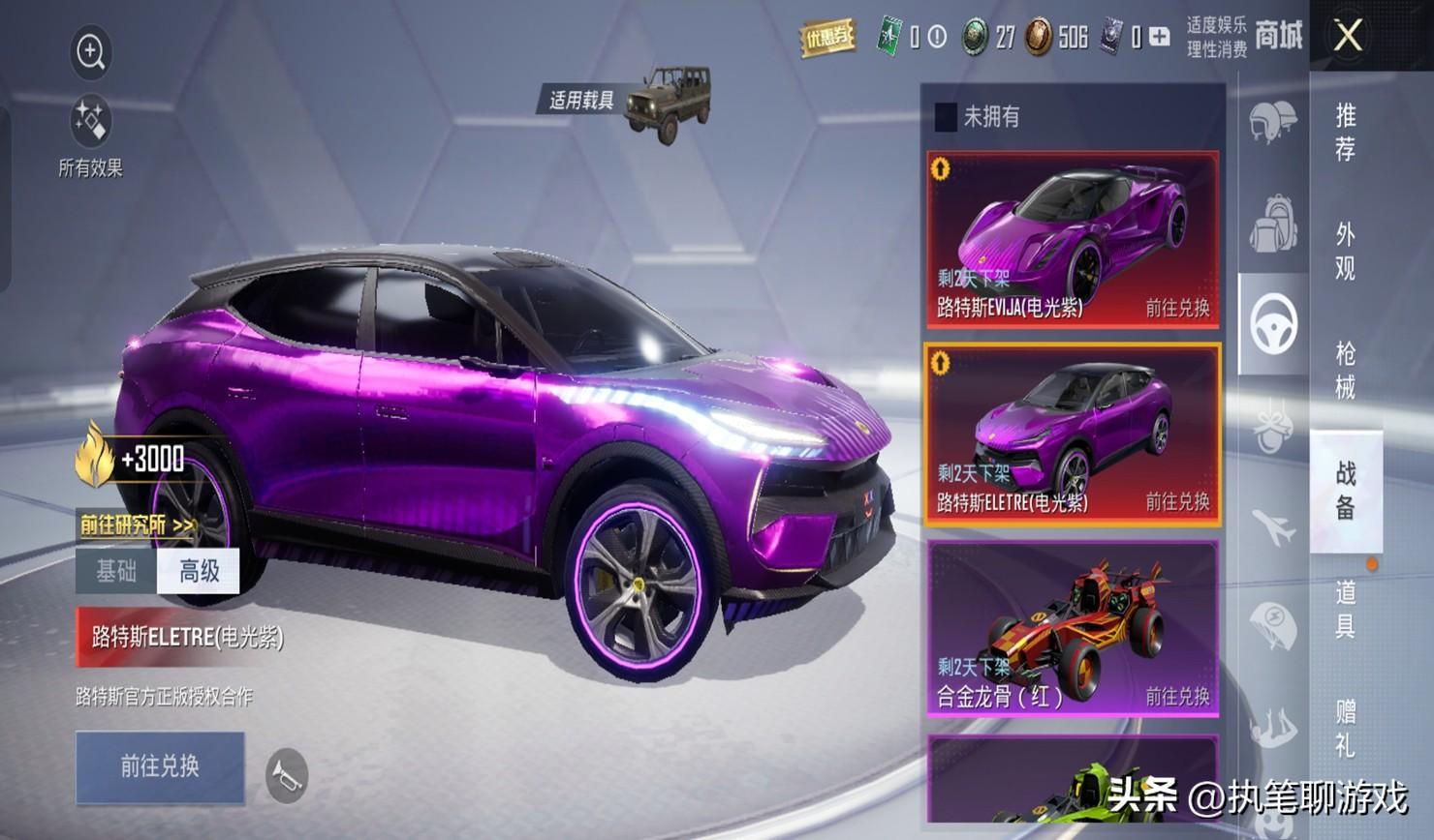 不過凡事都沒有絕對,“青春物語”系列的套裝、皮膚挺普通,但畢竟出現了《和平精英》第1個可以升級的載具皮膚,它就是路特斯系列。