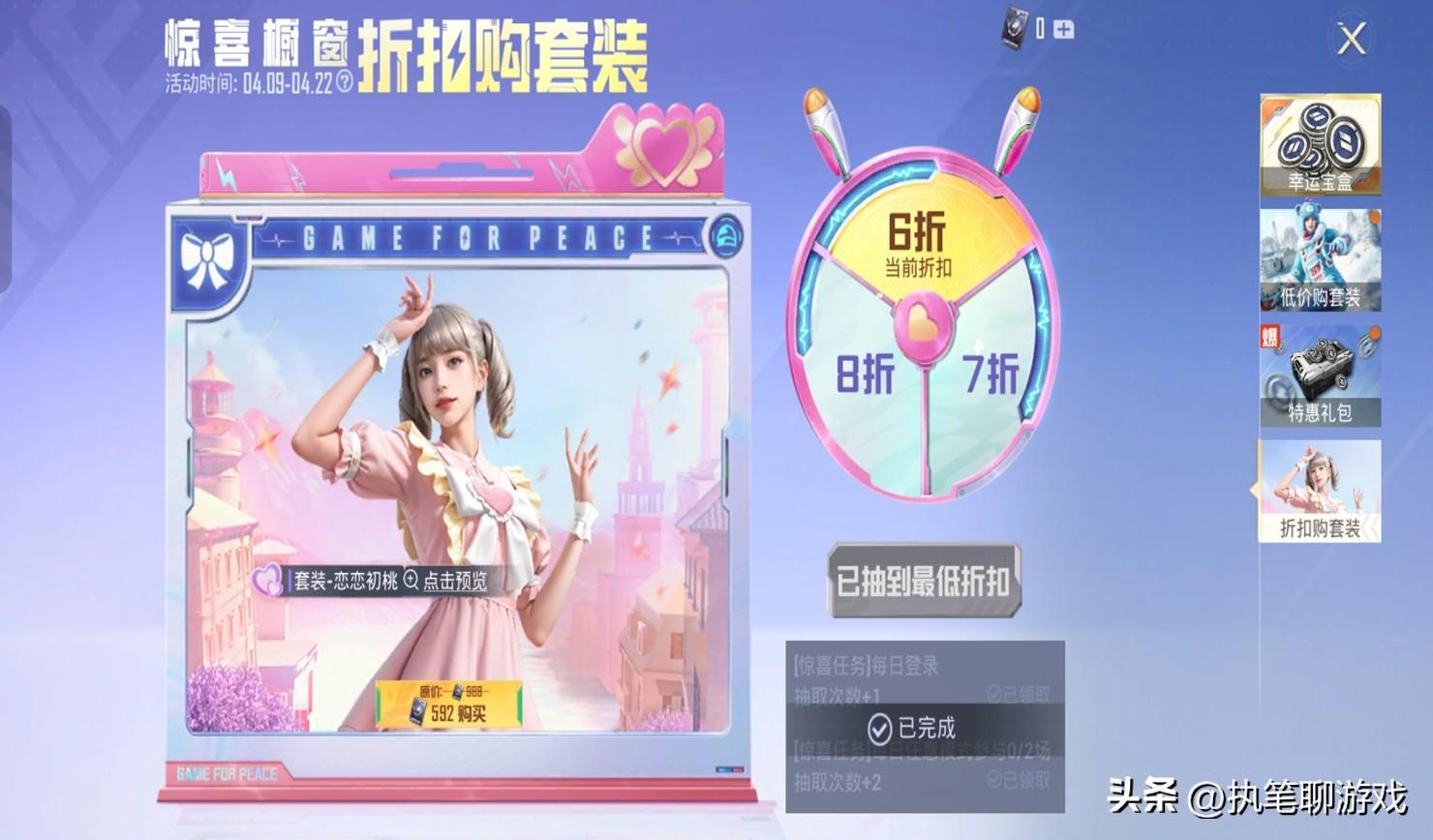 接下來則是直售類型的折扣套裝“戀戀初桃”,採用轉盤抽獎獲得折扣,然後使用對應的點券來兌換即可。