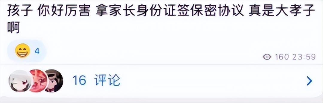而在他已發佈的視頻片段中,我們明顯能聽到他媽媽喊他去做作業的聲音,即泄密者大概率是個拿着父母身份證去籤保密協議的大孝子。