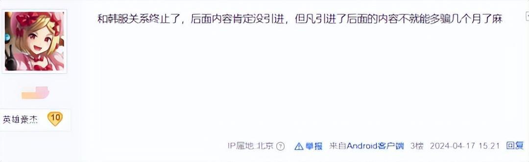 一些舅舅黨則表示,遊戲停服的最大原因是網易中止了跟韓服合作的關係,已經沒有什麼新內容可以引進給國服了。