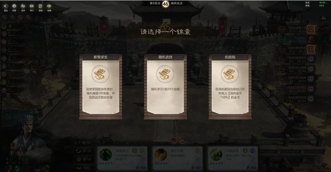 除了類自走棋的“湊流派”基礎玩法,《鬥將》還加入了強力的規則buff“錦囊妙計”,以及創新機制“裝備拍賣”。錦囊妙計可以給玩家提供多樣化的提升(比如一次性獲得1~10個技能),裝備拍賣則是讓對戰的玩家競爭想要的裝備,合適的裝備配合對應武將和流派,又能發揮更強大的戰力。
