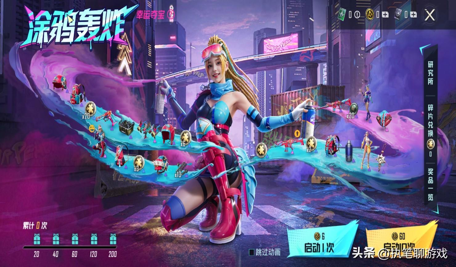首先要說的是“塗鴉轟炸”,屬於幸運轉盤裏的中轉盤,除了概率抽獎外,還可以使用碎片兌換心儀的皮膚。