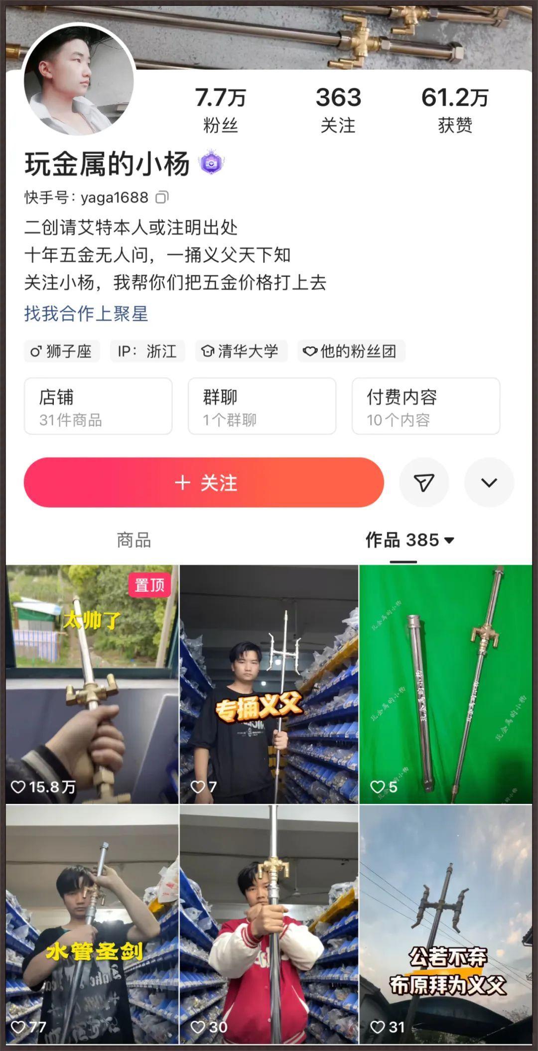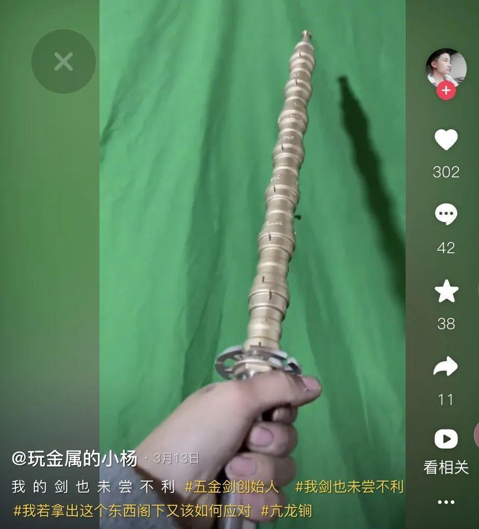 抖音快手上就有一類家裏開五金店、擅長玩改造的視頻主,比如“玩金屬的小楊”——也是文章最開始那把“工地聖劍”的來源。