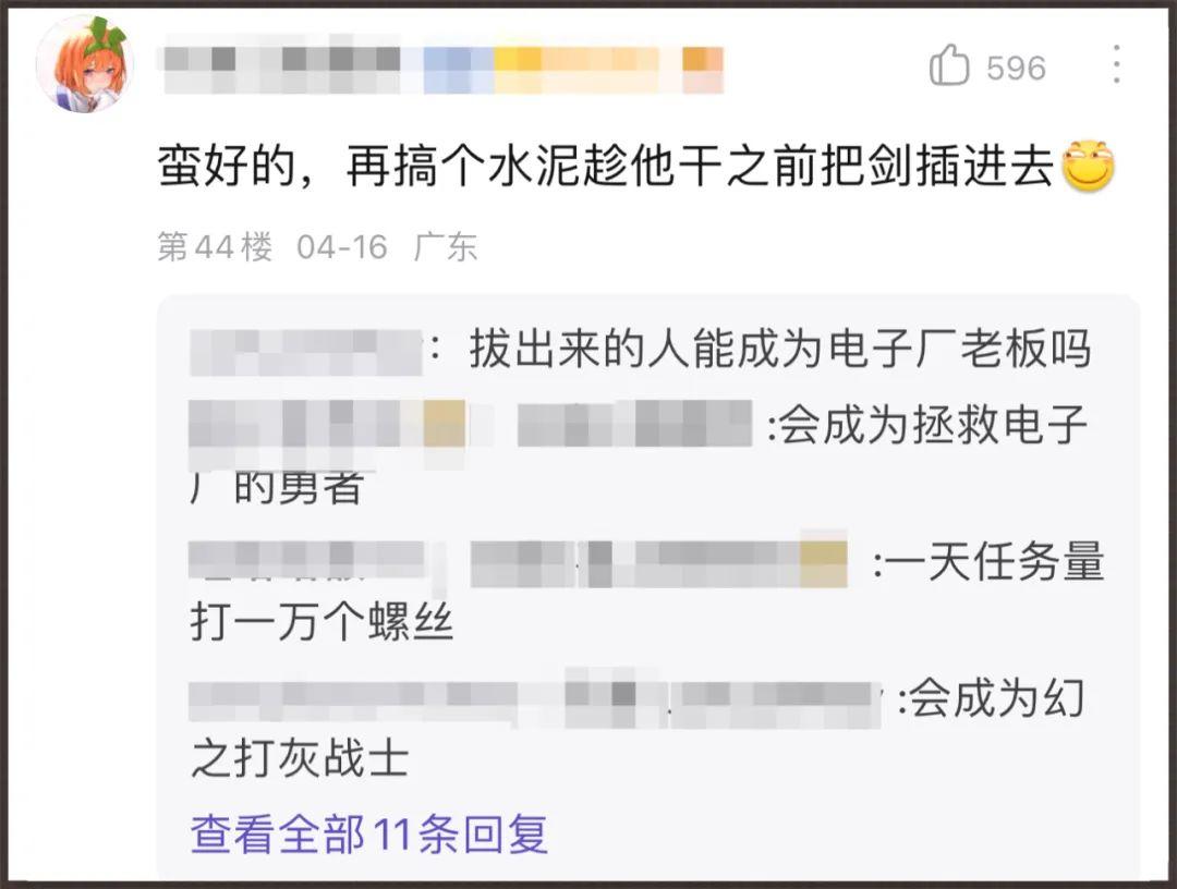 這時候,也只有網絡上一樣童心未泯的人才懂得“工地聖劍”的含金量了。
