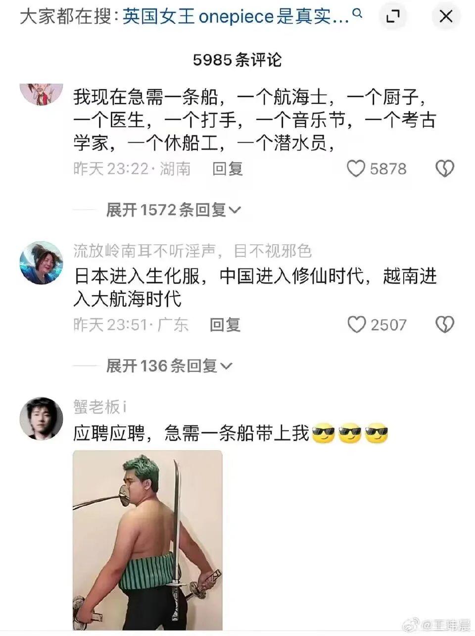 我倒是覺得,“越南海賊王”的流行,和BB姬昨天剛聊過的工地聖劍,有些異曲同工之妙。當然,不是指兩件事情的現實模板都很惡劣,而是因爲,作爲梗和樂子而言,它們都很大程度上,折射出了一部分網友們推崇返璞歸真、童心未泯的處世方式。