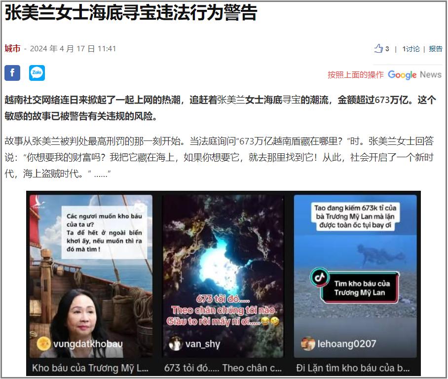 事情最先在越南當地產生病毒式傳播,在他們常用的Facebook上,尋找張美蘭寶藏的活動已經有超過30萬人感興趣參與。