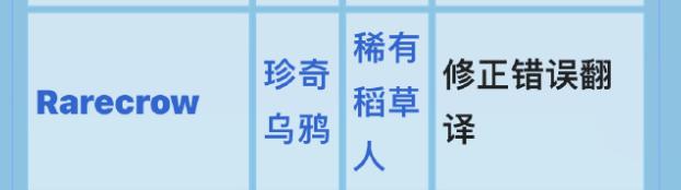 “珍奇烏鴉”→“稀有稻草人”。