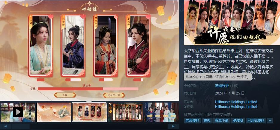 Steam昨天出現了一款95%好評率的類完蛋新遊《許願,我要帶她們回現代》。