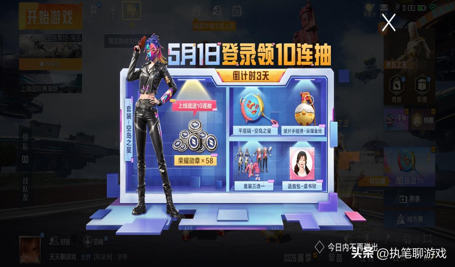 比如58個榮耀勳章的十連抽、平底鍋、點券套裝三選一以及身法級套裝“空島之星”等。