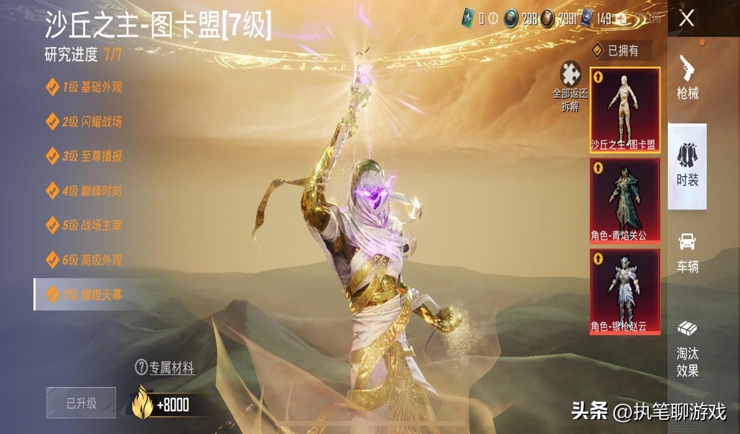 在上述兩種原因之下,導致《和平精英》這一次的神裝“沙丘之主”人氣極高,但僅限於1級版本,因爲7級版本足以勸退99%的玩家。