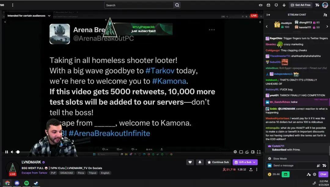 包括LVNDMARK、DrLupo在內的大量塔科夫的知名主播與KOL帶頭開始爲《暗區突圍》端遊海外版背書,上演節目效果。