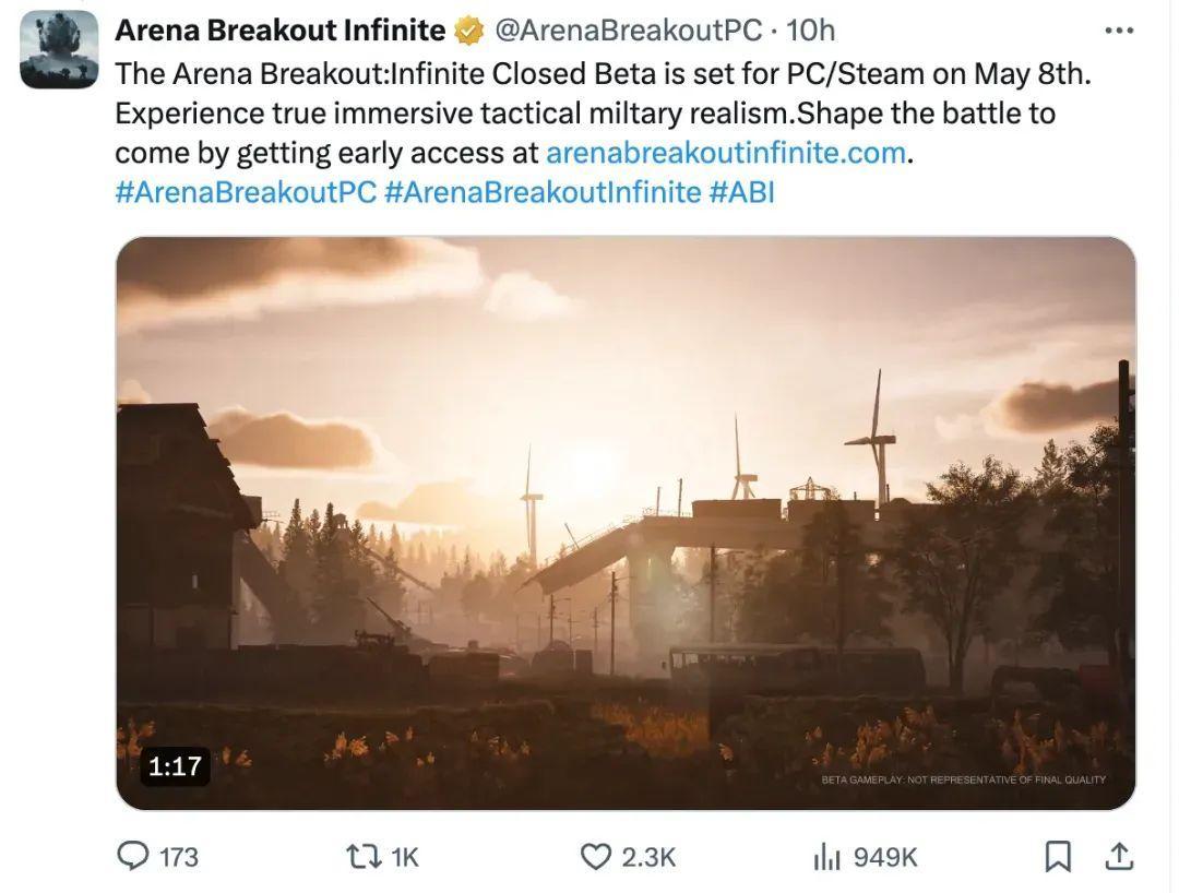 4月25日,《暗區突圍》端遊海外版的官推,發佈了遊戲的4K實機圖,並在次日公佈了海外版即將在5月8日開啓首測的信息。