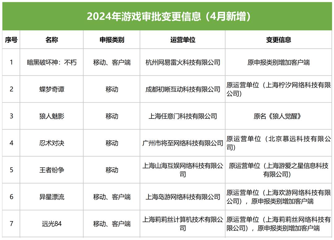 本批過審遊戲完整名單及變更信息如下(點擊查看高清圖):