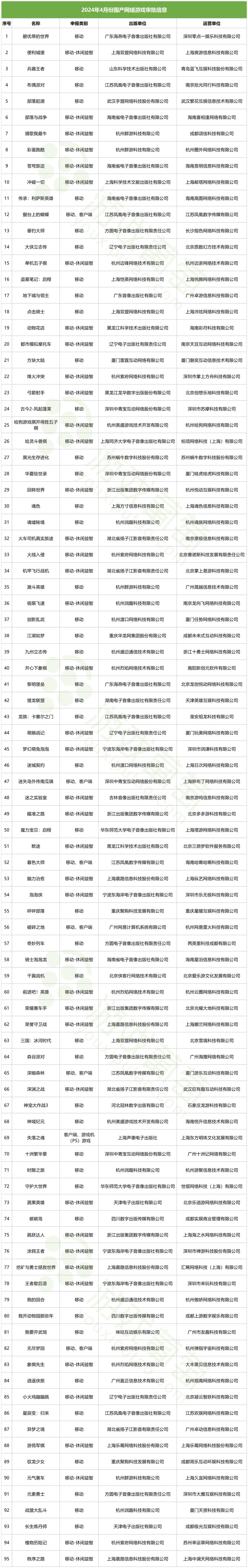 4月26日,國家新聞出版署公佈了2024年4月份國產網絡遊戲審批信息,共有95款遊戲過審,另有47款遊戲變更審批信息。