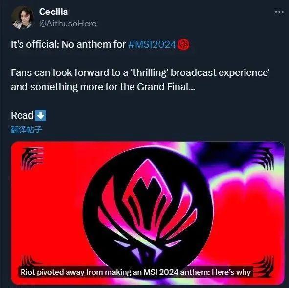 這也是自2019年MSI以來首次沒有主題曲的MSI。