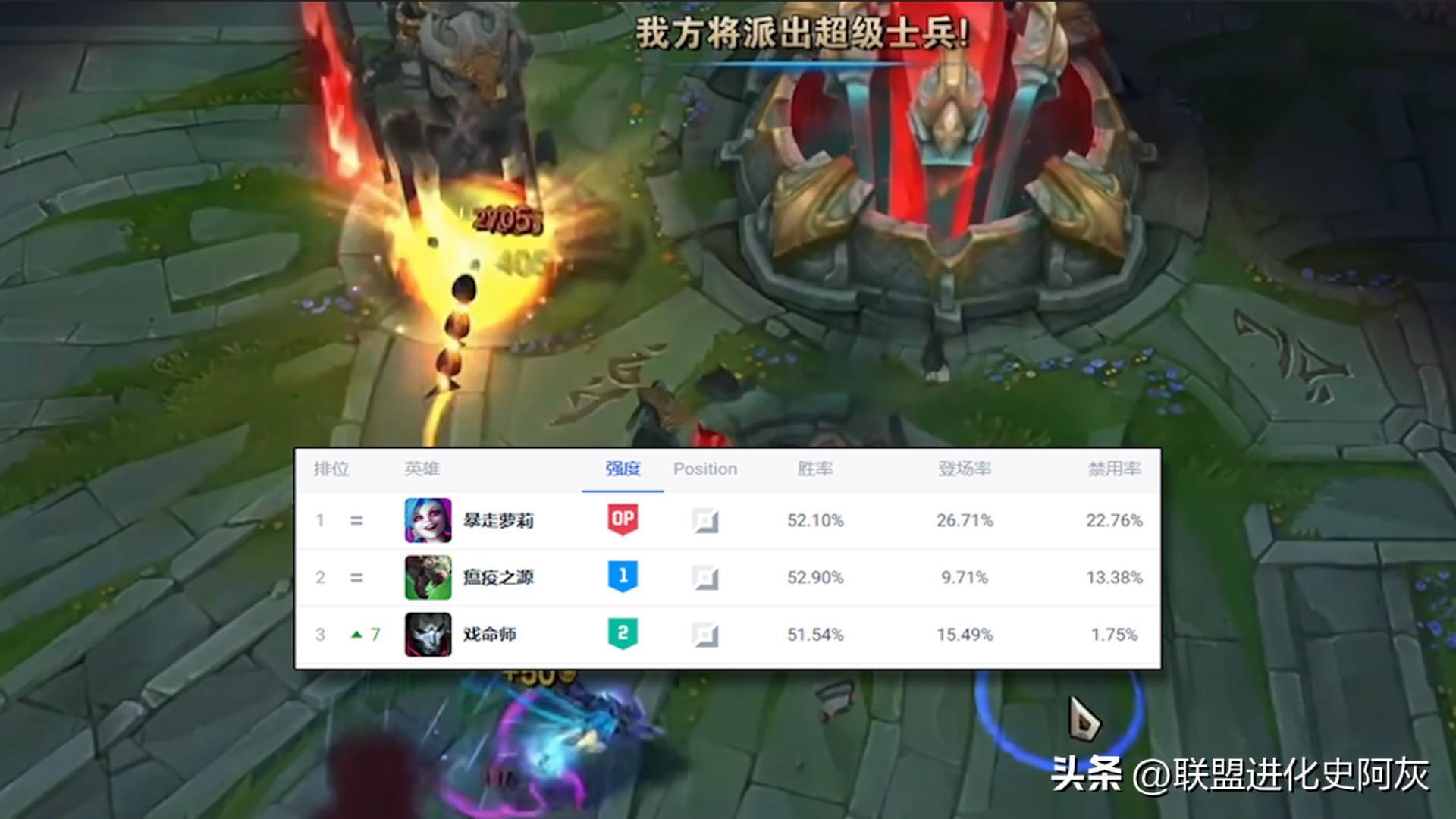 由於數值給的實在太多,金克絲從S3上線一路還債還到了S5,攻速、傷害、生命值,乃至手雷前搖都被砍成了豬皮,這回總該沒問題了吧?問泥妹啊!都削成這樣了還能登頂呢?靠北了真是,當我看到這一幕時就知道,大的,要來了!
