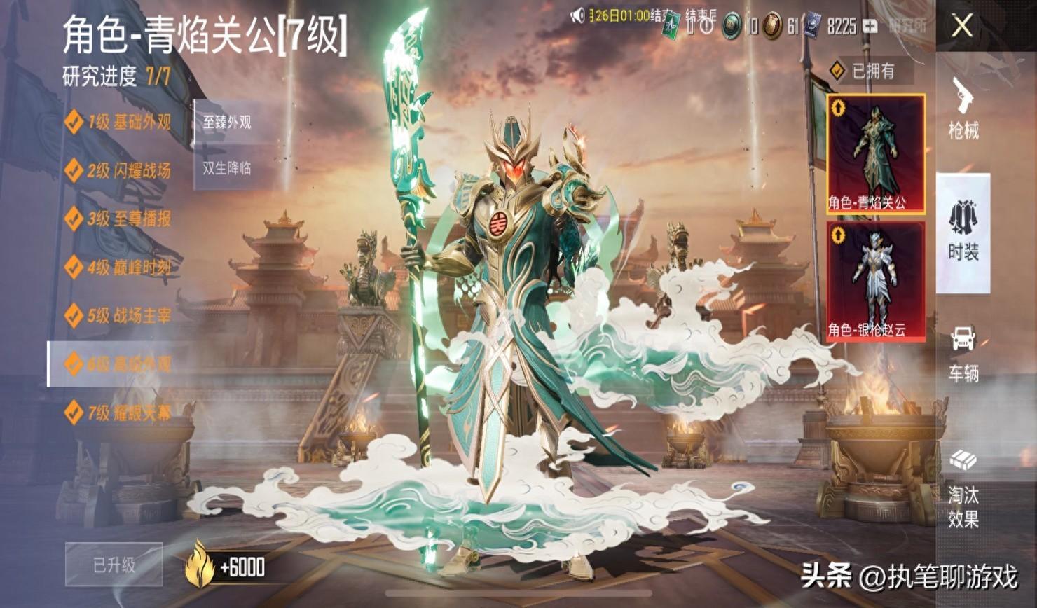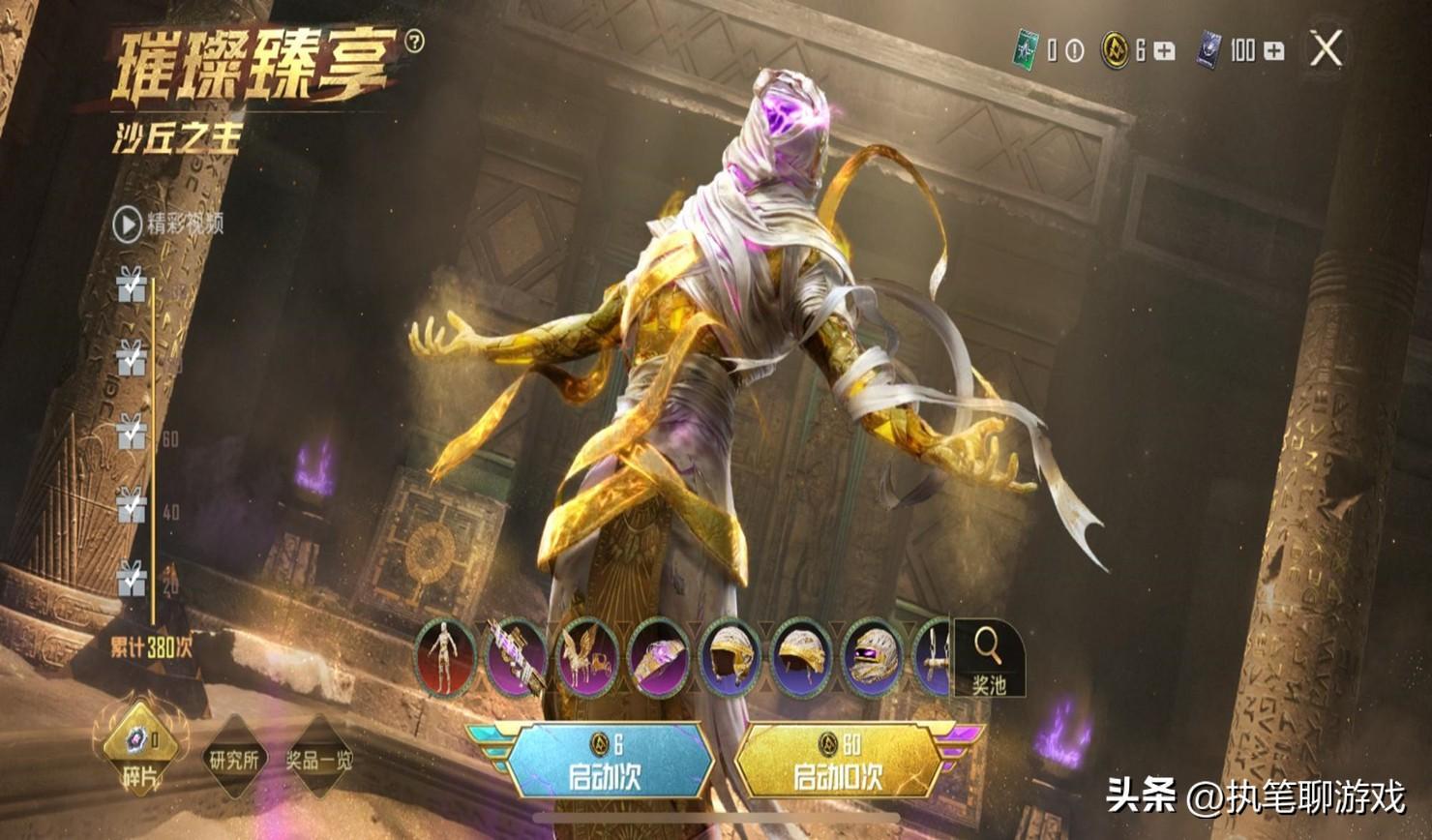 至今爲止,《和平精英》一共有兩個出現聖裝的幸運轉盤,一個是龍行天下,擁有趙雲、關羽,一個是沙丘之主,僅有1套神裝,也就是升級木乃伊。