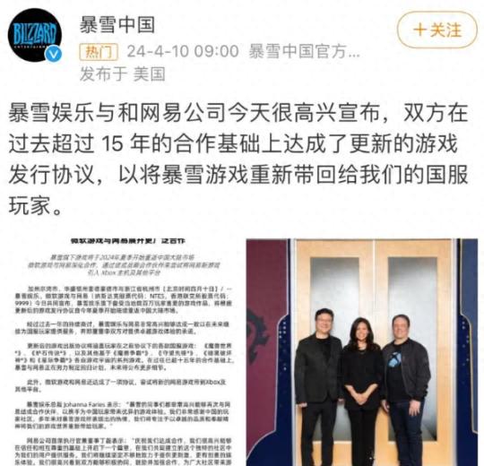 4月10日,暴雪和網易高調官宣“復婚”,兜兜轉轉暴雪還是跑回來和網易複合了。