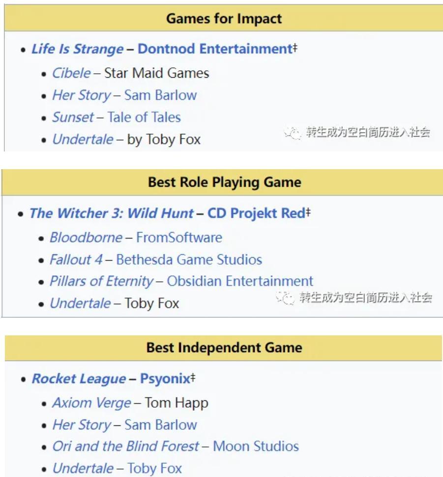 隨着2015年Undertale的發佈,這款遊戲除了收穫大量粉絲之外,還獲得了各大獎項的關注。