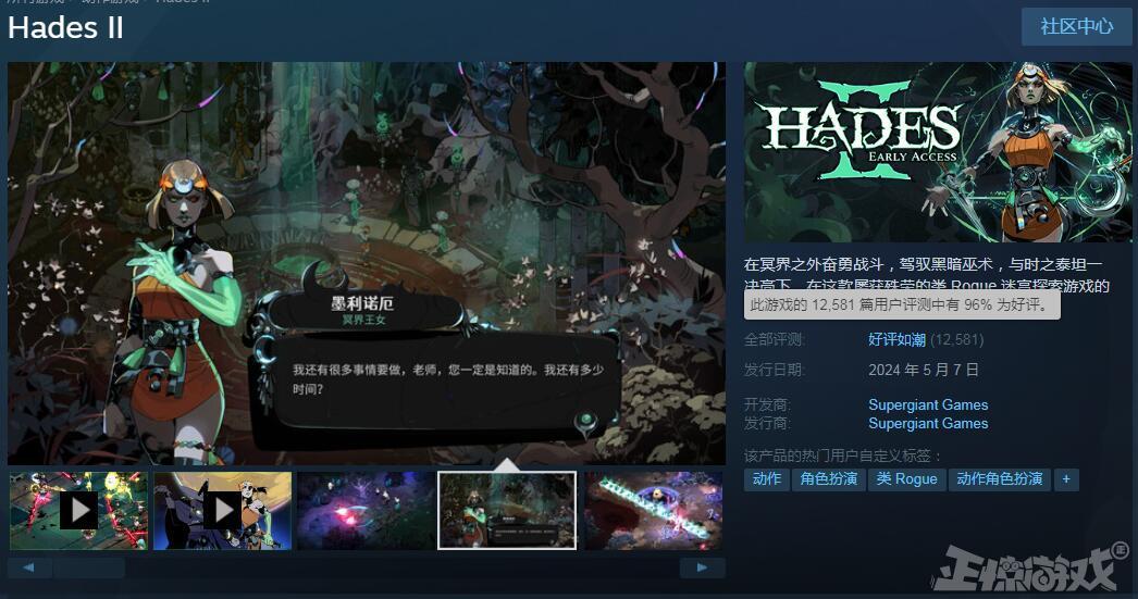 目前Steam平臺《哈迪斯2》在線人數已超過10萬,是前作的3倍。steam口碑“好評如潮”,好評人數首日就超萬人,好評率96%,遊戲性獲得一致好評,少數差評都是因爲BUG問題。