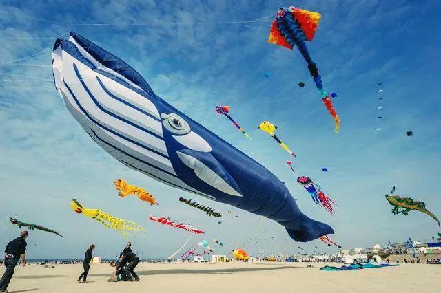 在這裏,能看到卡車一樣大的蟑螂風箏,藍鯨般巨碩的鯨魚風箏,以及碩大無朋的怪蟲、火車和巨烏賊,彷彿空中的鬥法大會。