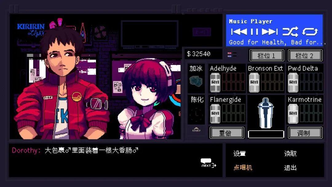 在《賽博朋克酒保行動》中,我們身處一家有趣的酒吧,和魅力十足的老闆調情,聽激萌機械交際花講葷段子,我們複述着出圈的臺詞:“人不能……至少不該……”
