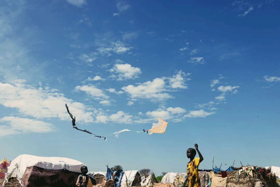 就在此時此刻的非洲,我們很少關注的角落裏,蘇丹已經爆發了一年零一個月的內戰。數千平民死亡,數百萬人流離失所,在破布和枯草搭建的難民營中,骨瘦嶙峋的孩童用垃圾袋做出了風箏,放飛在非洲的土地,這是他們在顛簸流離的生活中,唯一能享受的遊戲。