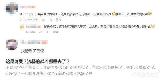 遊戲目前還在首測當中,有網友表示,玩了一下午,確實有點《傳奇》,還有很多要改進的地方。有跟帖吐槽,這遊戲就是套《劍靈》皮的《傳奇》,韓服都開了好幾年了不可能改了。更有網友表示,頁遊已刪。