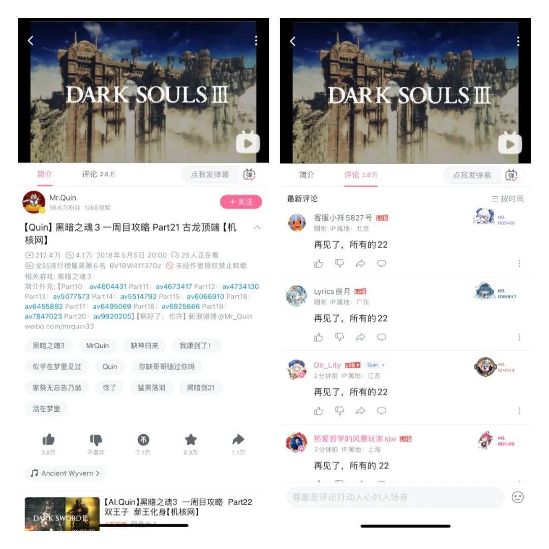 給不懂的朋友簡單解釋一下,Mr.Quin在國內黑魂圈子挺有名的。他出的攻略視頻做到第21期,打完大書庫、古龍頂之後拖更好幾年,拖成了meme。
