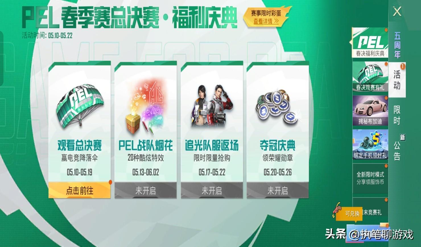 原本預計4月份的返場,沒想到會被光子延遲了時間,這也是因爲PEL賽事進度的原因。如今伴隨着時間推移,光子也不再藏着掖着了,已經正式官宣PEL春季賽總決賽的福利慶典。