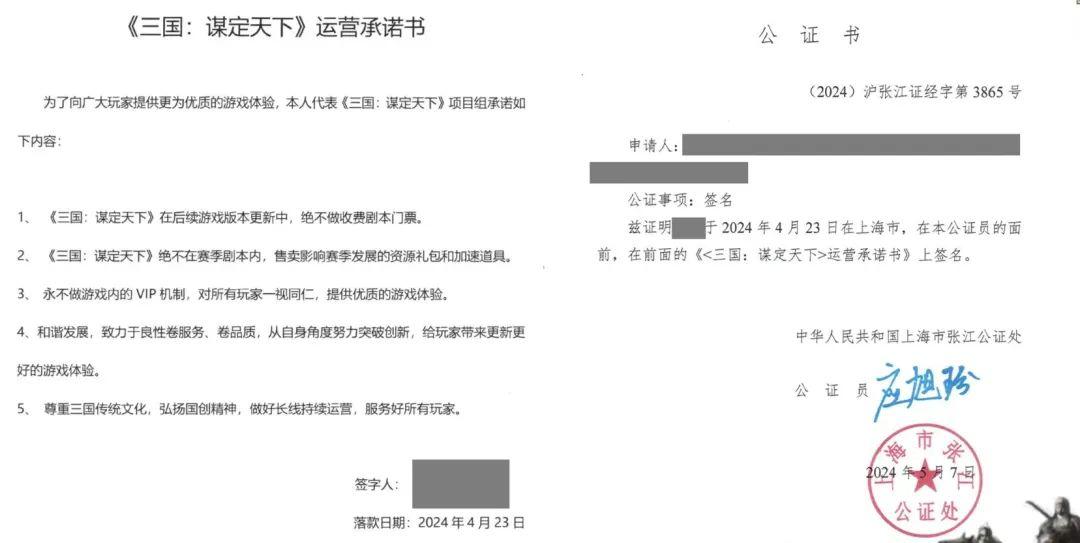除了剛剛提到的真金白銀的投入外,B站還帶來了兩份承諾,有公證處證明的那種:一是運營承諾書,二是抽卡出貨概率。