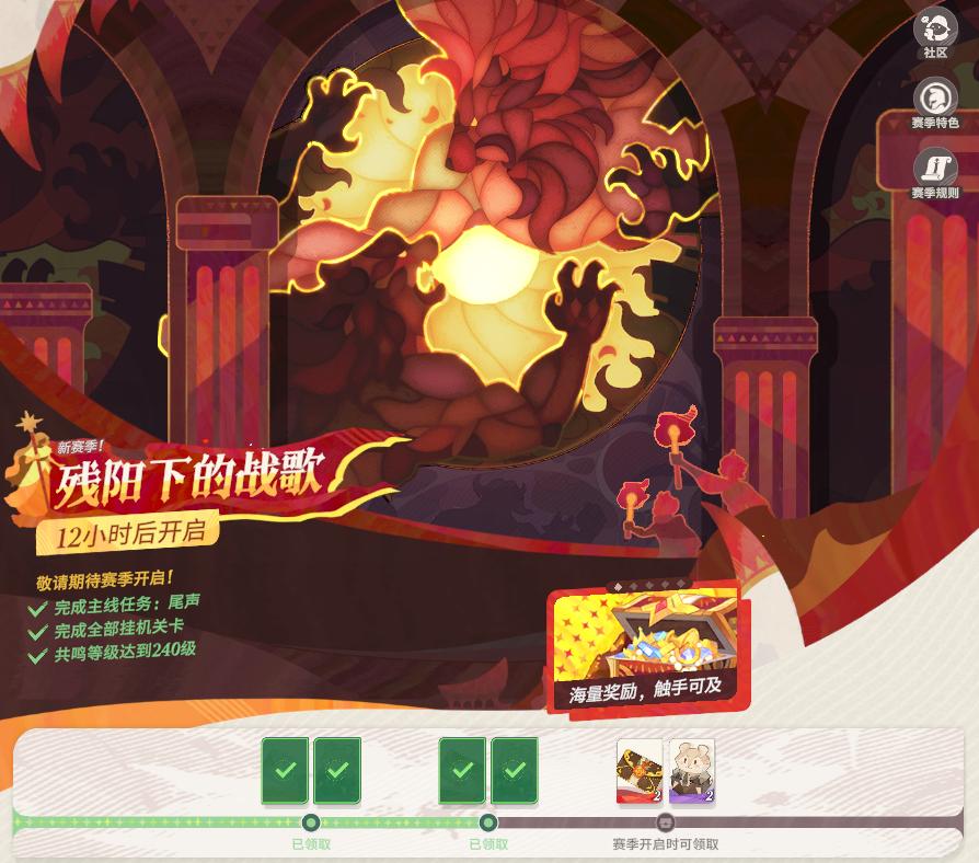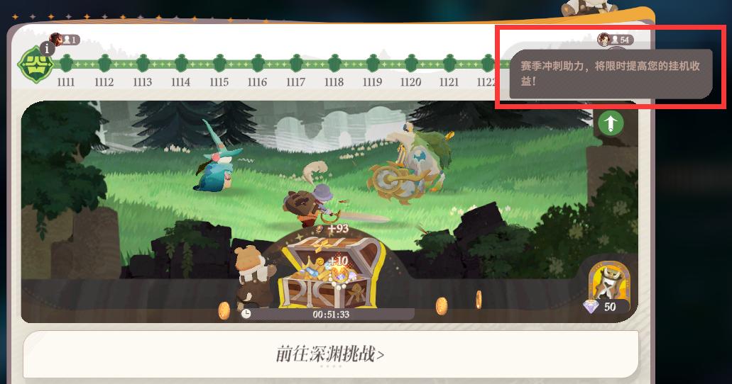 爲了讓所有玩家都能第一時間進入新賽季,遊戲還會給未達到賽季標準的玩家提供衝刺助力,限時提高掛機收益。由於遊戲的核心數值就是來自等級、裝備等掛機收益,所以只要玩家的等級到位,即便是0氪,用一套七拼八湊的陣容,一樣可以平推,達成賽季的進入條件。