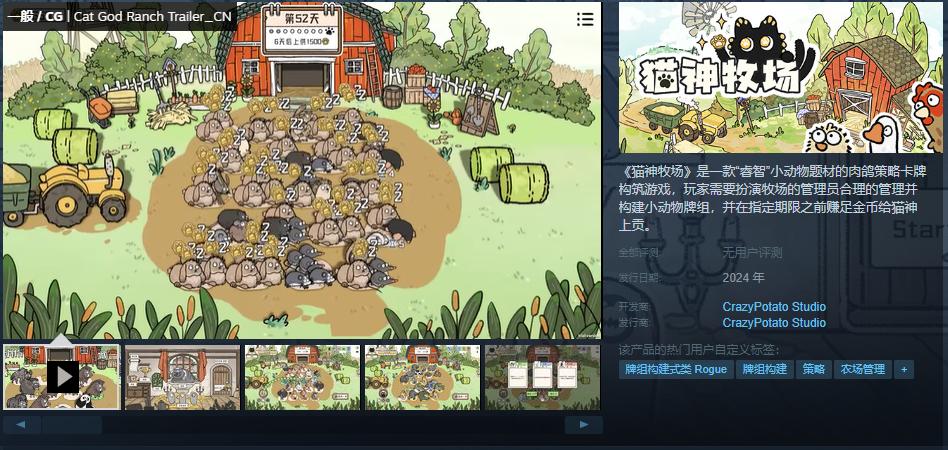 在這塊貓神統治的牧場中,玩家將扮演一名管理員,賺取金幣定期給貓神上貢。現在遊戲Demo版絕贊上線,製作人在Steam的無限重玩節還爲Demo進行了更新,增加了不少新內容,正式版預計將於今年年內發售。