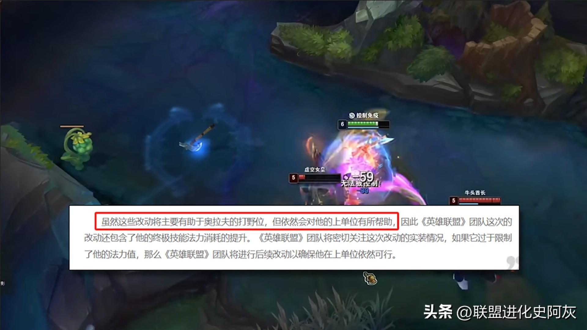 接着是阿木木和蔚,我之前也想不通,爲毛他倆的大招藍耗要逐漸疊加呢?你說強度高吧,其他更OP的大招都調成100了,又不像時光那樣有前科,直到最近我看到了奧拉夫的改動,設計師想加強打野奧拉夫,又怕上單會過於強勢,於是把原本無消耗的諸神黃昏改成了100藍耗,再看一眼阿木木和蔚,都是專職打野,那這樣就可以解釋的通了,之前設計師想把他倆按在野區,然後時間一長呢就給忘了。