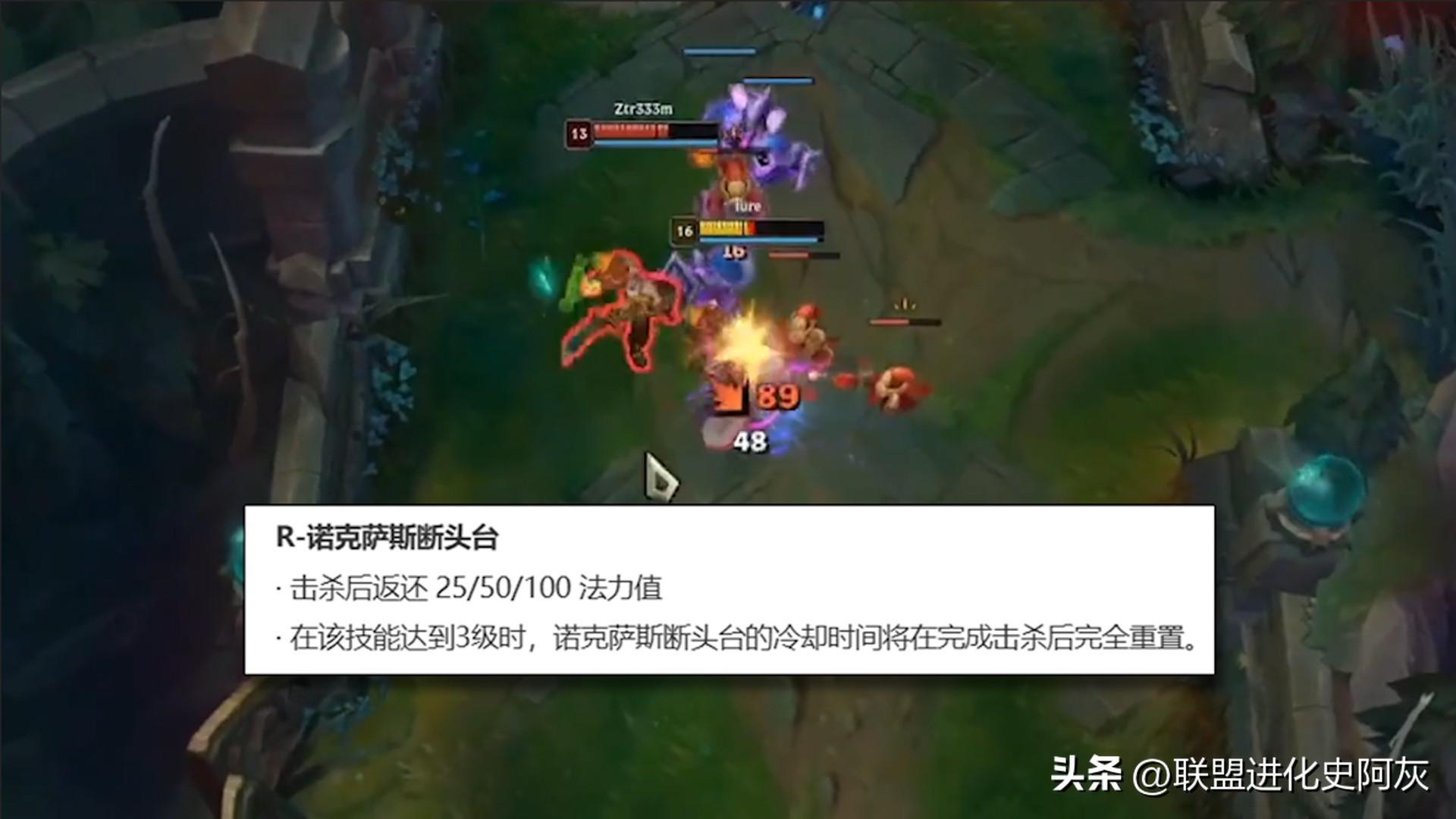 由此可見,這些大招藍耗非100的英雄應該都跟平衡有關,就拿諾手來說,曾經每劈一下就要100藍,本來團戰就是個廢物,好不容易能當回人頭狗,結果劈兩下沒藍了,關鍵他還沒有合適的藍量裝,你說糟不糟心?設計師見狀立馬盡孝,先是加了一個斬殺返藍機制,後來又改成了再次施放不耗藍,且16級無消耗徹底瘋狂。