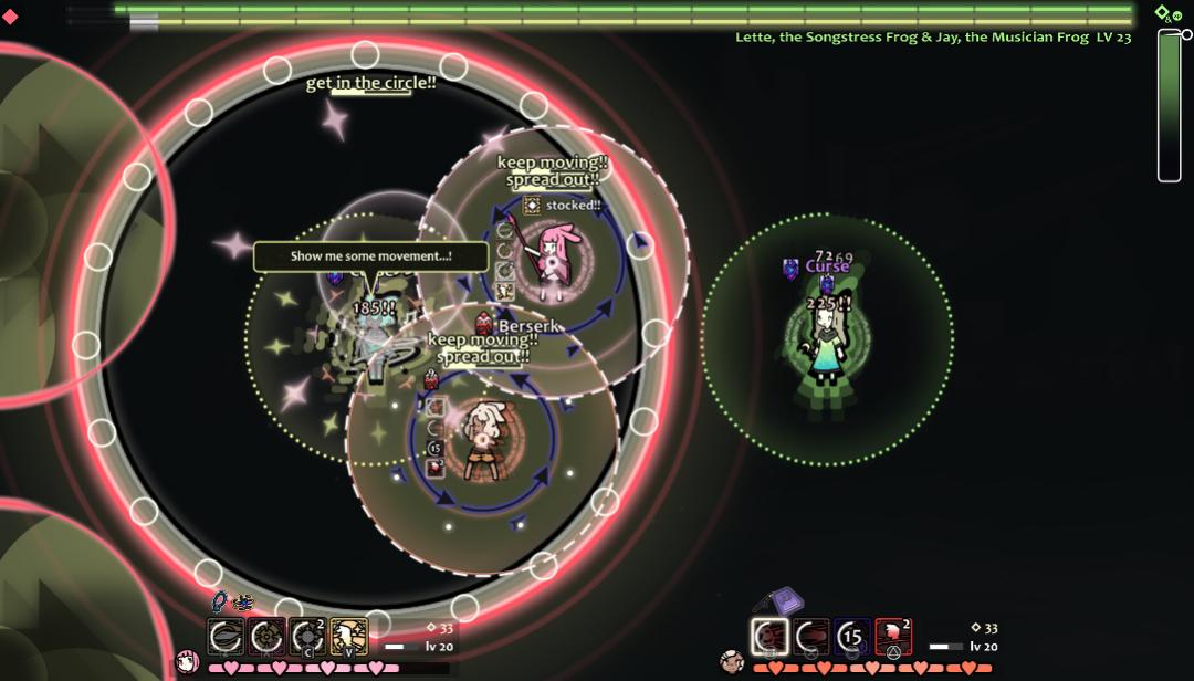 Boss會鎖定操縱角色的玩家,以玩家自身爲圓心展開一定大小的法陣。
