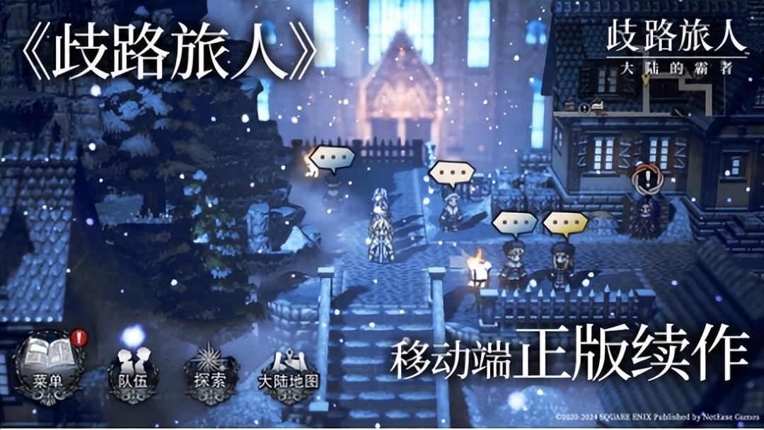 《歧路旅人:大陸的霸者》在保留系列核心特色的同時,致力於移動端的優化與創新。遊戲在移動端平臺上展現了不輸主機的視聽效果,實現了高品質遊戲體驗的移動化移植。其核心玩法上,遊戲採用8人團隊的回合制戰鬥系統,內設劍士、舞者、商人、學者、藥師、遊俠、獵人、星官八大職業類別,各職業具有獨特技能和屬性配置,爲玩家提供了依據個人策略偏好選擇和培養角色的自由度,旨在組建最具戰鬥力的探險隊伍,深入探索遊戲世界。