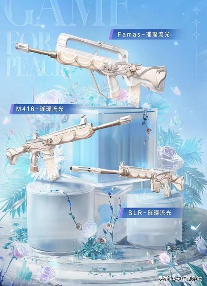 首先我們來看3個槍皮,分別是Famas、M416、SLR,由於採用鑲鑽的工藝來進行設計,再加上bulingbuling的視覺效果,算得上是顏值、品質俱佳。據天哥瞭解,目前就有不少玩家奔着M416與Famas而來,畢竟它們的登場概率還是挺高的。
