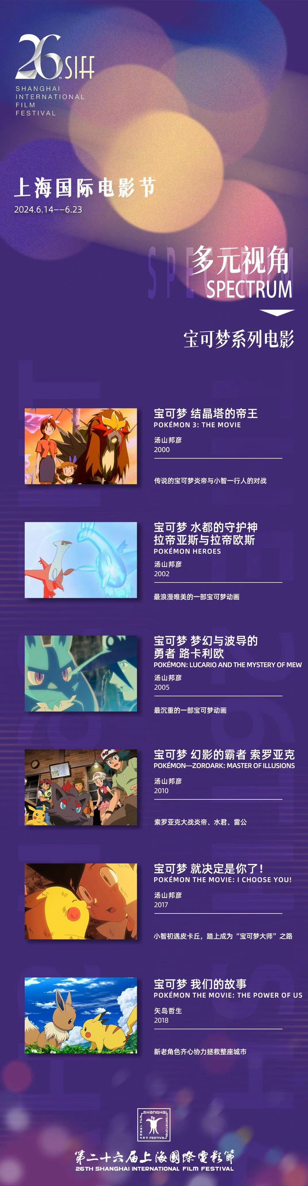 本屆上海電影節多元視角單元選擇了六部“寶可夢”劇場版電影,包括《寶可夢》《寶可夢超世代》《寶可夢鑽石&珍珠》等多個世代的作品。