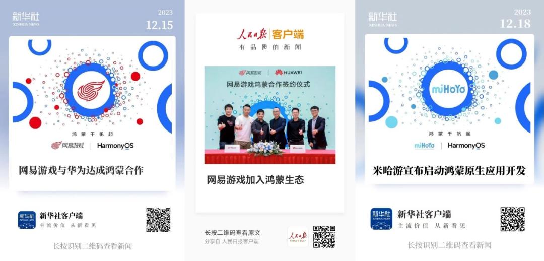 帶頭的是米哈遊和網易,去年12月這兩家大廠先後官宣加入鴻蒙生態,開發鴻蒙原生應用。一時間,相關話題不僅收穫了微博、抖音、頭條、B站、百度、知乎等平臺十幾個熱搜,更是獲得人民日報和新華社等主流媒體報道,鴻蒙也順勢成爲遊戲圈一大熱詞。